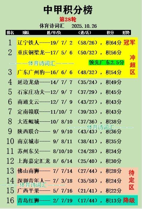 本赛季的中甲与去年很像,冠军一枝独秀,亚军与季军连续多轮激战都没有拉开差距,垫底队早早降级,也有两三队在隔空鏖战。今天,中甲第28轮最后三场比赛同时开启,升级与降级都会有所影响。
