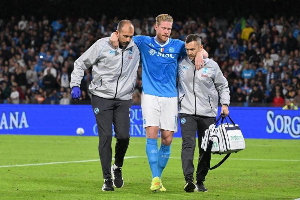 在那不勒斯3-1击败国际米兰登顶意甲积分榜的比赛中,首发出战的34岁比利时中场德布劳内在此役第33分钟主罚点球破门,但主罚点球时拉伤了腿筋,随后就被队友搀扶着离场。